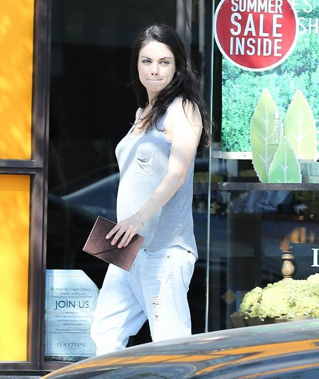 Беременная вторым ребенком Мила Кунис была замечена с полуторагодовалой дочерью и мужем Эштоном Катчером в районе Беверли-Хиллз.
