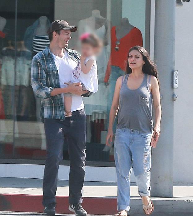 Беременные звезды: Мила Кунис на прогулке по Беверли-Хиллз с Эштоном Катчером и их дочерью