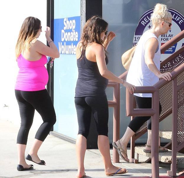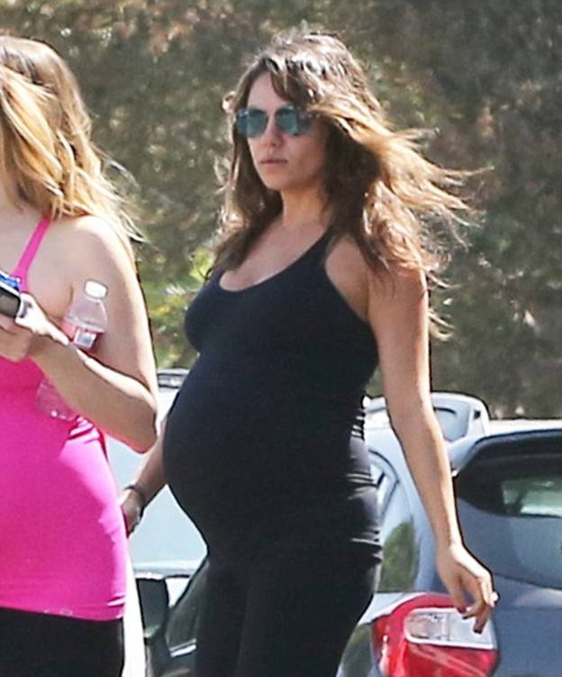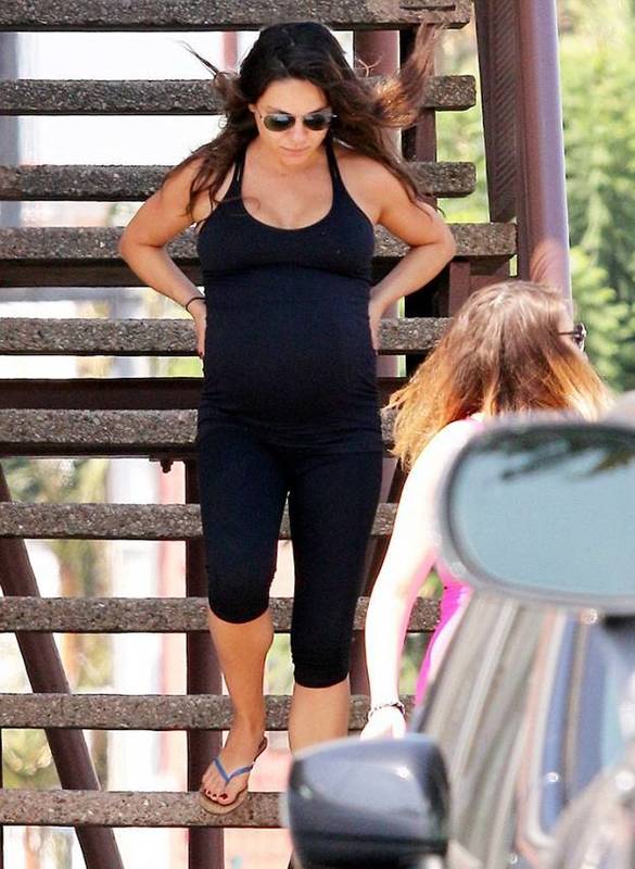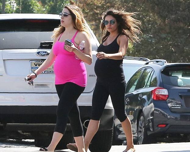 В среду Мила Кунис была замечена с подругой, когда покидала класс йоги для беременных.