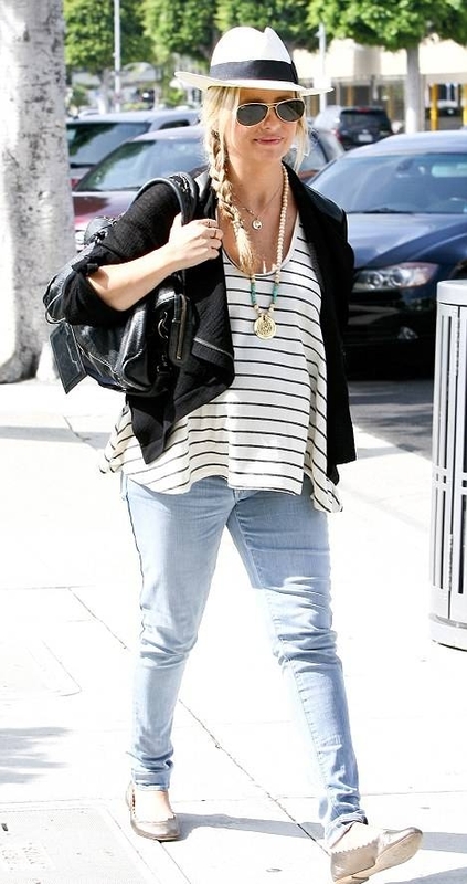 В четверг Сара Мишель Геллар была замечена в районе Санты-Моники. 35-летняя актриса была одета в выцветшие джинсы и свободную тунику, дополнив свой наряд красивыми аксессуарами, тем самым доказав, что и беременные могут красиво и модно одеваться.
