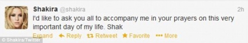 Она написала: «Я хотела бы попросить вас всех, чтобы вы помолились за меня в этот важный день моей жизни».