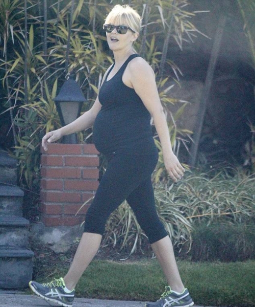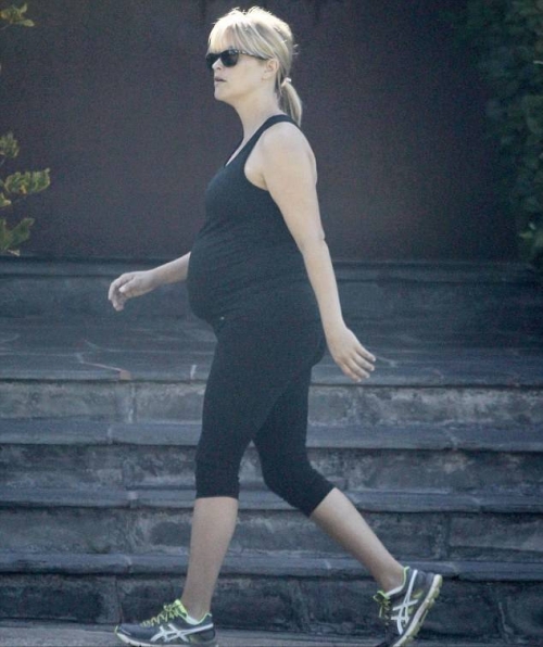 Риз Уизерспун должна родить в конце августа. Но это не мешает ей заниматся физическими упражнениями.