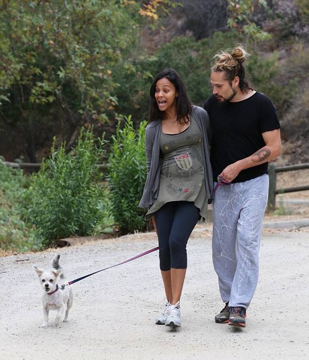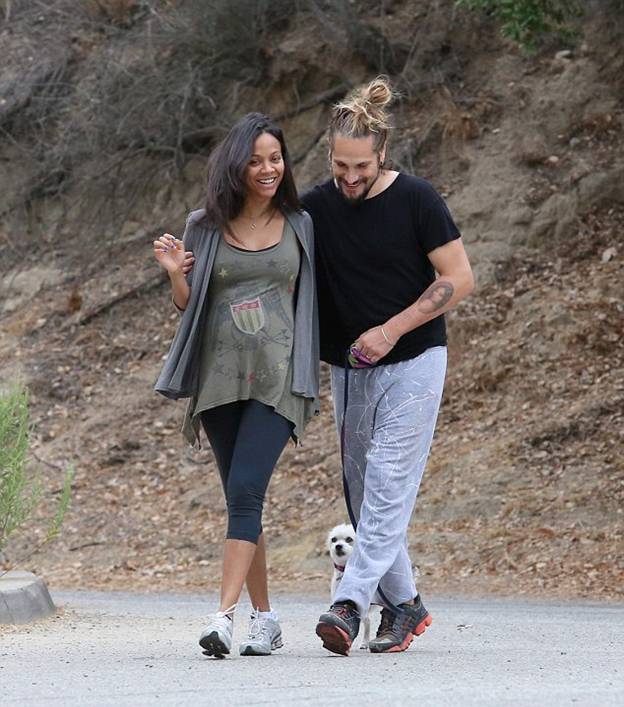 Во вторник Зои Салдана со своим мужем Марко Перего были замечена на утренней прогулке по Лос-Анджелесу. Пара выгуливала в местном парке свою собаку. Напомним, что пара тайно поженилась в Лондоне в июне 2013 года всего после нескольких месяцев знакомства.