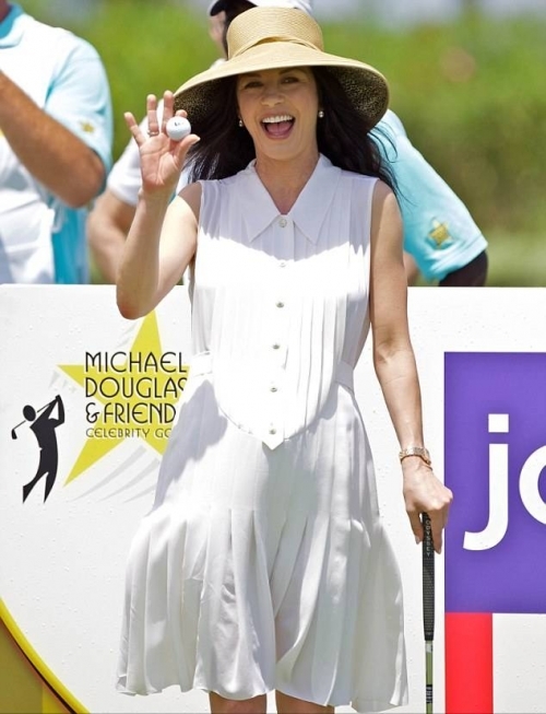 В эти выходные прошел трехдневный турнир по гольфу, в котором приняли участие знаменитости. Королевой турнира бесспорно была 42-летняя Кэтрин Зета-Джонс. Она радовала своими нарядами своего супруга Майкла Дугласа, который был организатором этого благотворительного турнира на Багамах.