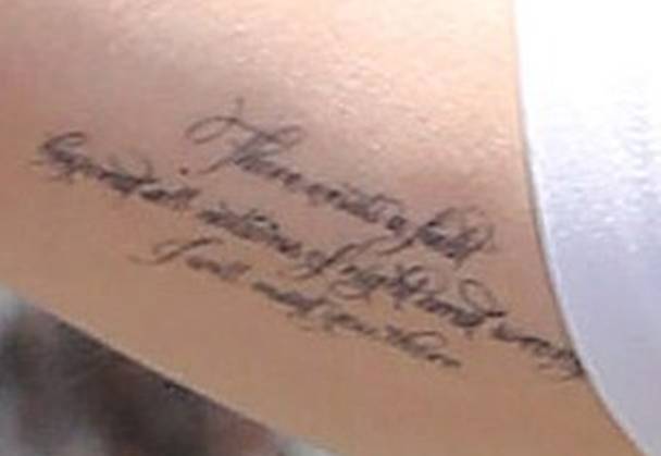 Что интересно, во время шуточной спортивной игры "Бросок через дорогу", многие заметили, что Брэд обзавелся новой татуировкой, которая расположена на бицепсе правой руки.