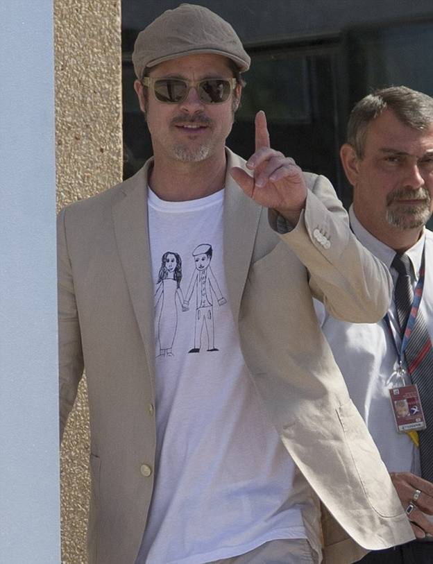Брэд Питт носит футболку, рисунок которой нарисовала его дочь Вивьен