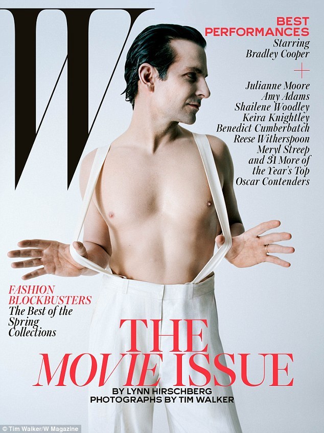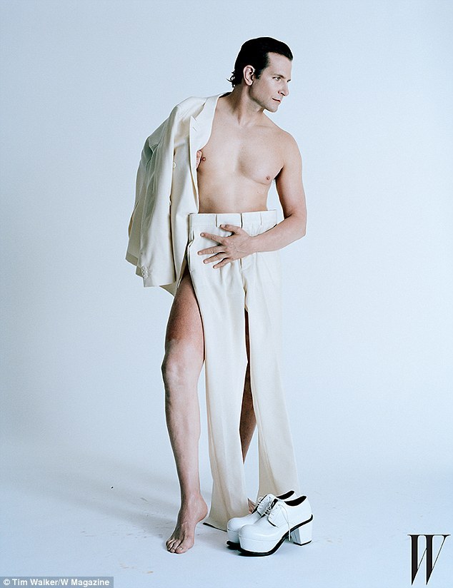 Вызывающим стал образ Брэдли Купера, появившегося голым в последнем номере журнала W Magazine, с белым костюмом от Louis Vuitton, охватывающим его "скромность" и экстравагантную пару обуви от JW Anderson.