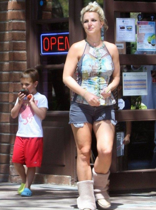 Бритни Спирс была замечена вместе со своими сыновьями в Санта-Барбаре, в среду,13 июня. Певица носила странный ансамбль, со стоящий из джинсовых шорт, облегающего halterneck, и теплых сапог, и это при температуре +26.