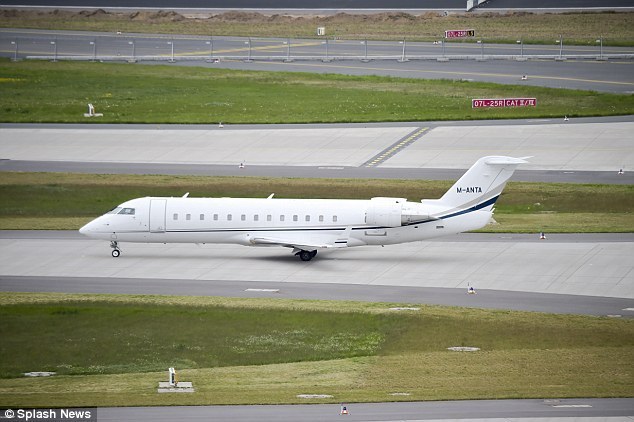 60-летний актер выглядел веселым и жизнерадостным, когда он направлялся к самолету на взлетно-посадочной полосе в аэропорту Берлина с 36-летней Эммой Хеминг - Уиллис в воскресенье.