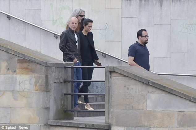 Брюс Уиллис выглядел счастливым, когда он покинул Берлин в воскресенье с женой Эмма Хеминг после романтического отдыха
