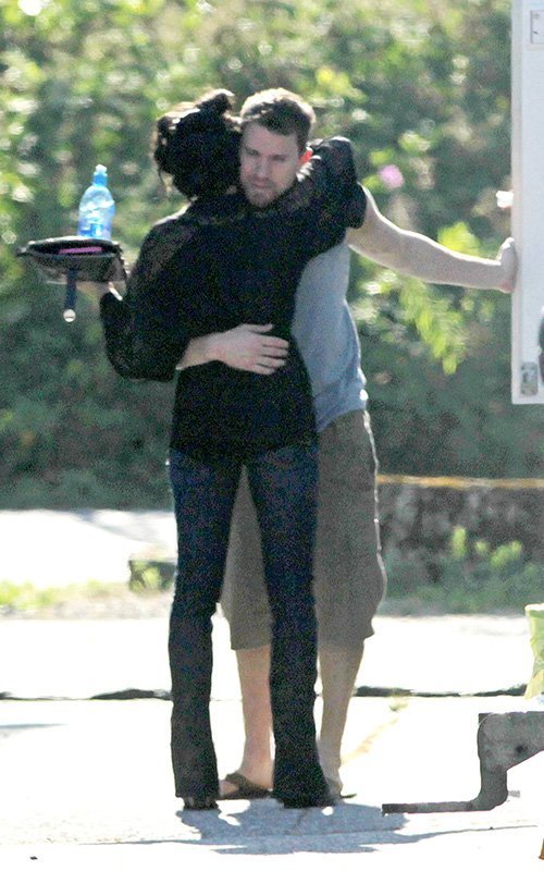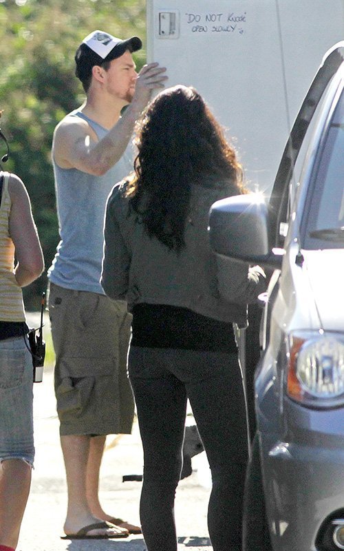 Что интересно, на съемочной площадке Ченнинг обнимался отнюдь не с женой (она сзади)