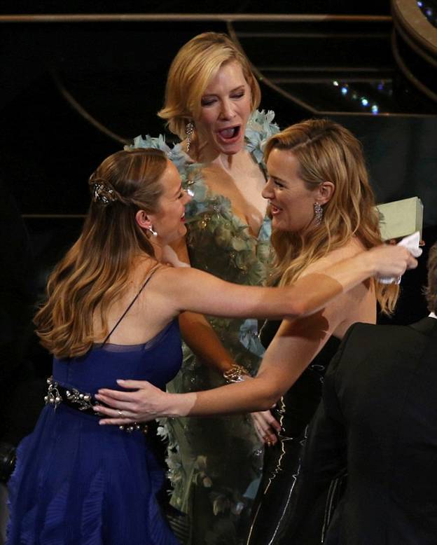 Иногда фотографы схватывают удивительные мгновения и, вполне возможно, что снимки, сделанные на церемонии Оскар, с Кейт Уинслет,Кейт Бланшетт и Бри Ларсон именно такие.