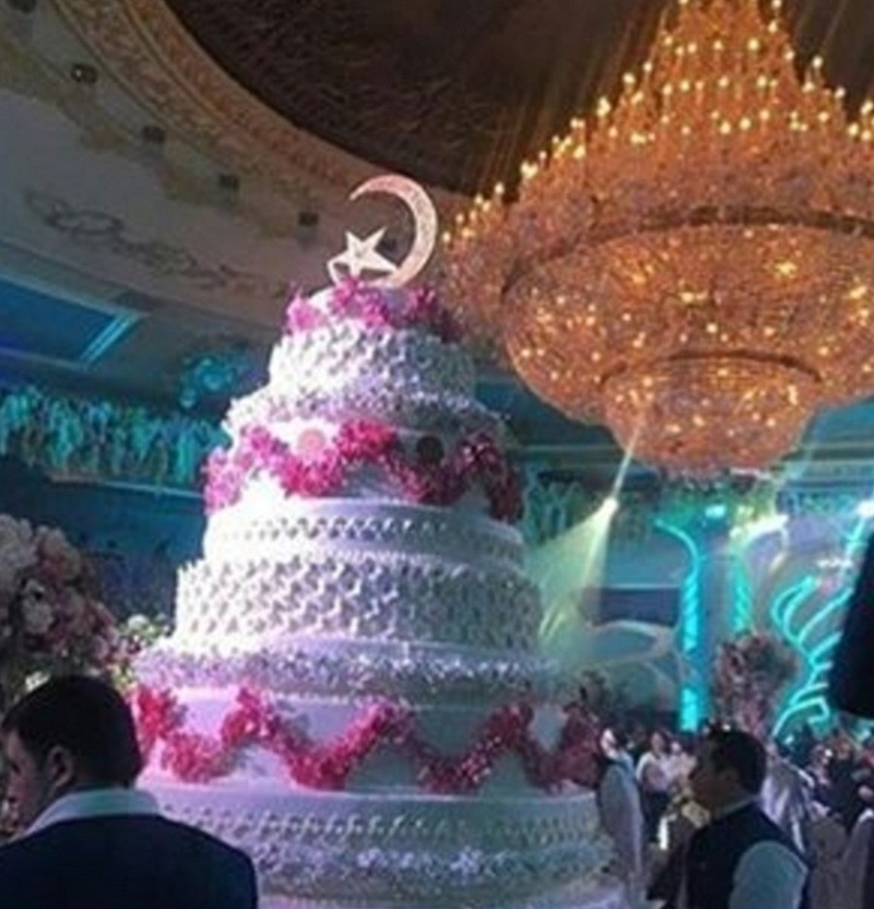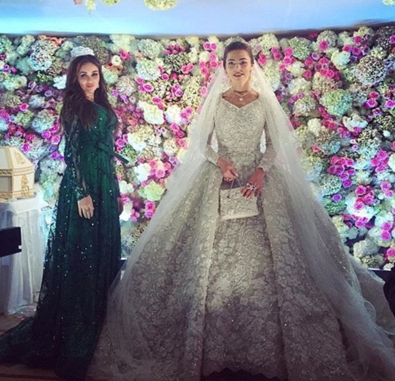 Невеста - 20-летняя студентка Хадижа - была одета в платье, украшенное натуральными камнями. Весил наряд около 25 килограммов, а его стоимость превысила 25 млн. руб.
