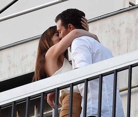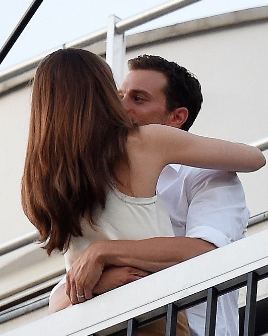 Дакота Джонсон и Джейми Дорнан целуются в Париже в последний день съемок фильма "На пятьдесят оттенков темнее", 19 июля 2016 г.