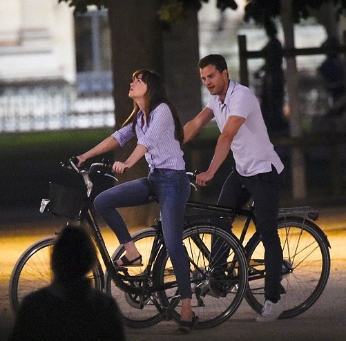 Дакота Джонсон и Джейми Дорнан целуются в Париже в последний день съемок фильма "На пятьдесят оттенков темнее"