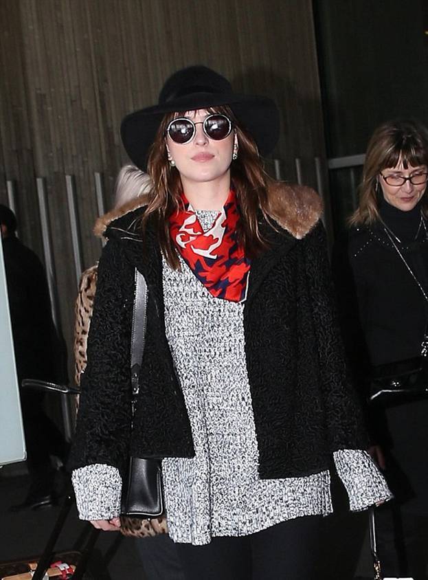 Дакота Джонсон прилетела в Париж на Неделю моды