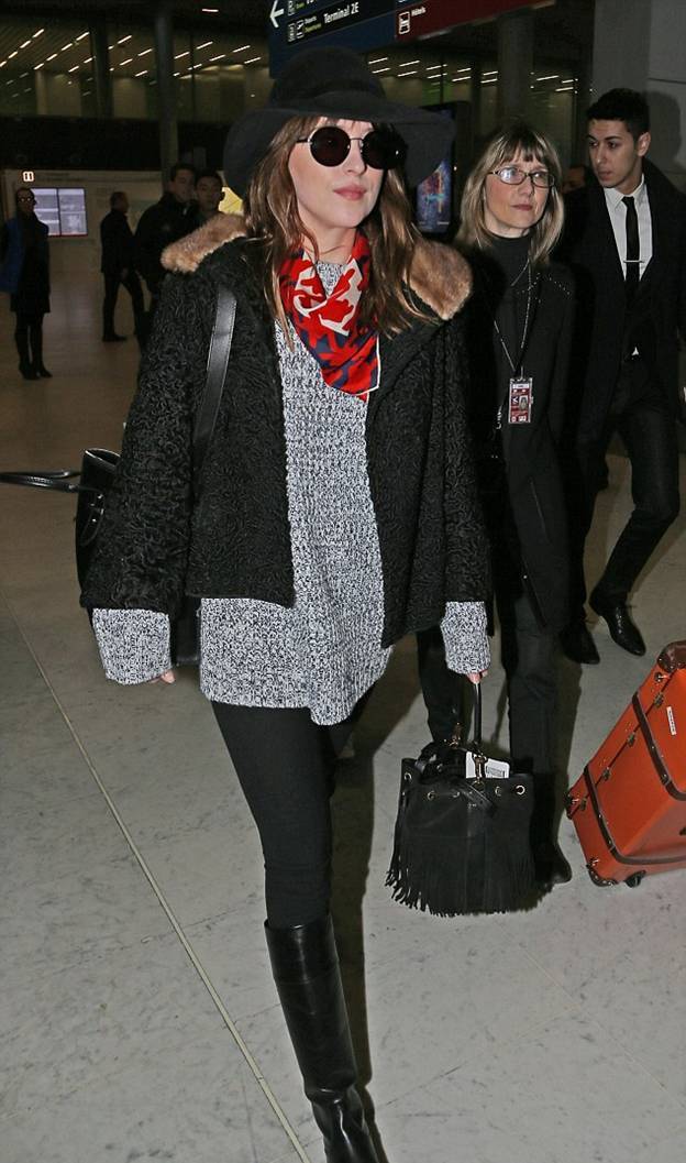 В четверг утром (5 марта) Дакота Джонсон прилетела в Париж. Актриса, к которой сейчас повышенное внимание из-за ее работы в фильме "Пятьдесят оттенков серого", была замечена в аэропорту Де Голль.