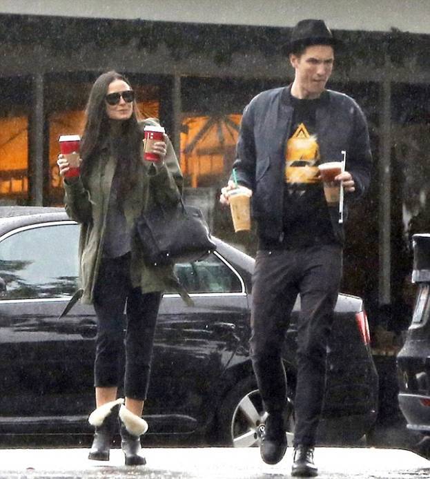 Они впервые обнародовали свои отношения в январе, и хотя их нечасто можно увидеть вместе, похоже, что их отношения продолжаются. 52-летняя Деми Мур и ее молодой парень, 28-летний Шон Фрайдэй, были замечены на улицах Лос-Анджелеса, когда сквозь дождь шли к своей машине из местного кафе.