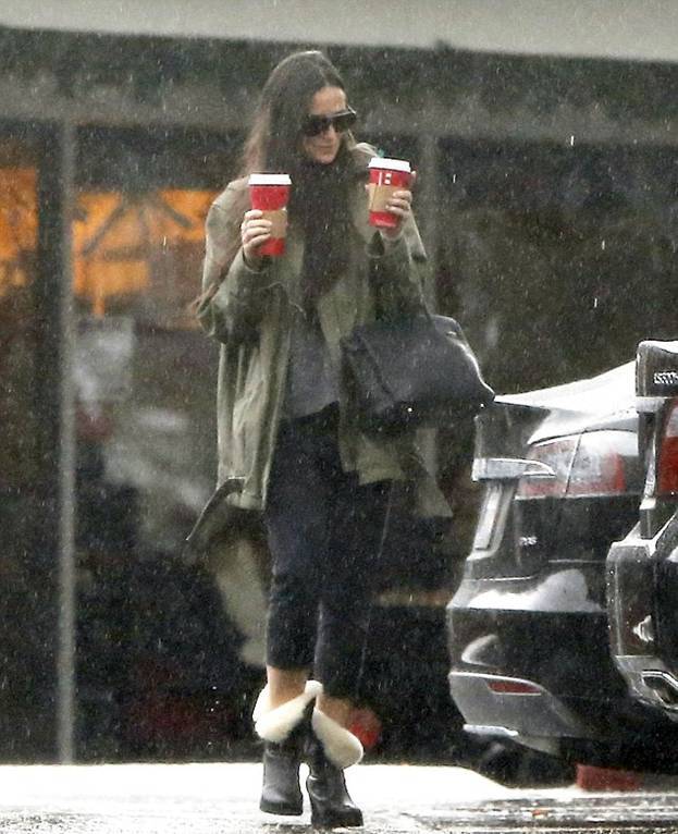 Несмотря на идущий дождь, Деми красовалась в солнцезащитных очках, по-видимому таким образом стараясь остаться инкогнито.