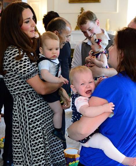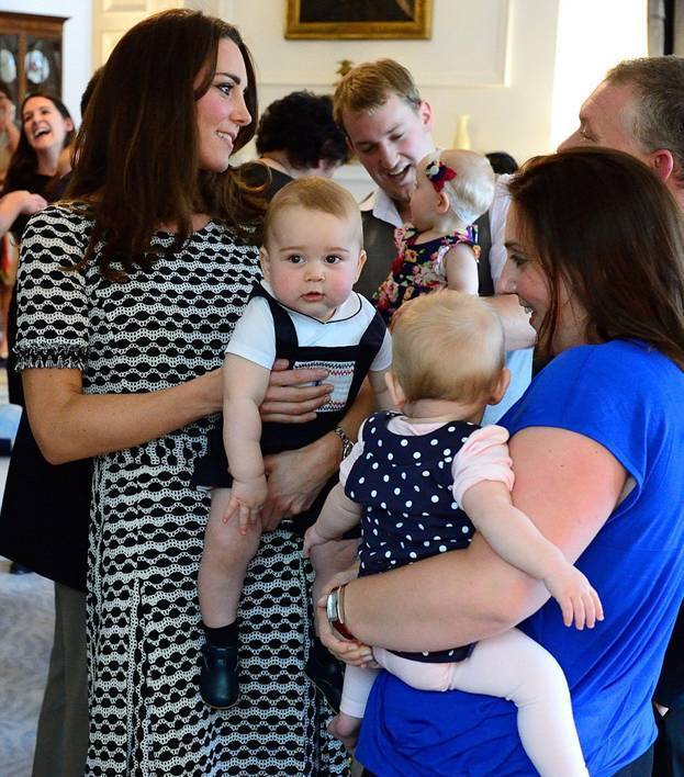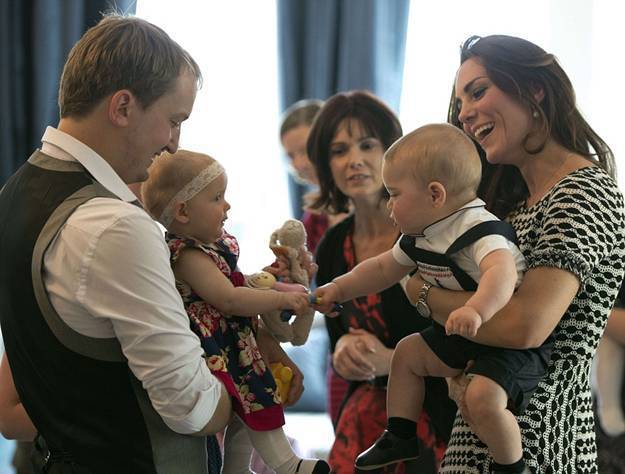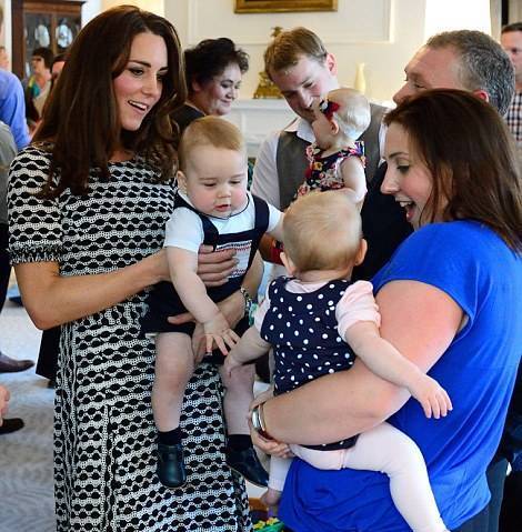 Принц Георг провел свой первый официальный визит к своим будущим подданным. Восьмимесячный малыш с удовольствием пообщался со своими одногодками в количестве десяти человек, которых принесли их родители на встречу с его всемирно известными родителями.