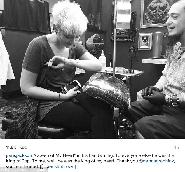 Пэрис Джексон, единственная дочь Майкла Джексона, в честь своего восемнадцатилетия сделала татуировку. Она посвятила ее своему отцу, написав на руке: "Король моего сердца".