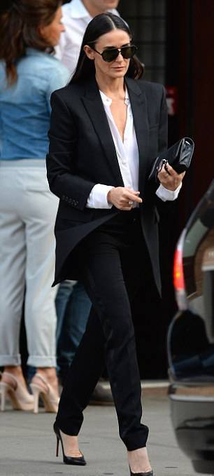 В этот же день Деми Мур была замечена, когда покидала свой нью-йоркский отель Greenwich