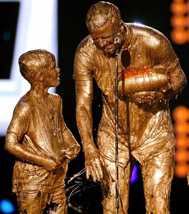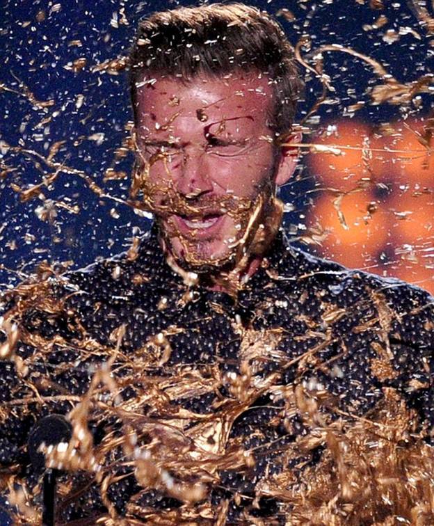 В свое время он получил от своих поклонников прозвище Золотые шары (Goldenballs), но похоже что устроители Choice Sports Awards Nickelodeon Kids и вправду решили сделать его золотым. Дэвид Бекхэм со своими сыновьями Ромео и Крузом, которые попали под раздачу, были полностью облиты липкой субстанцией золотого цвета, на сцене мероприятия, которое прошло в четверг вечером в Лос-Анджелесе.