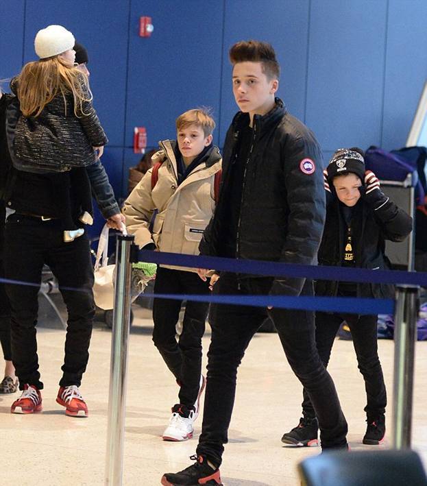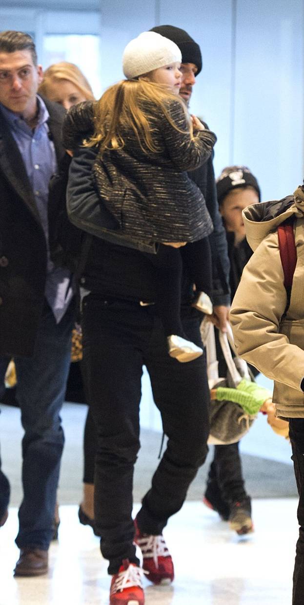 Дэвид Бекхэм с детьми во вторник покинули Нью-Йорк. Их заметили в аэропорту, когда они торопились на рейс до Лондона.
