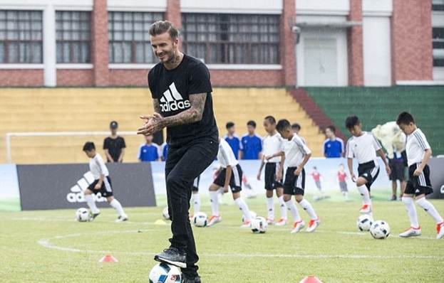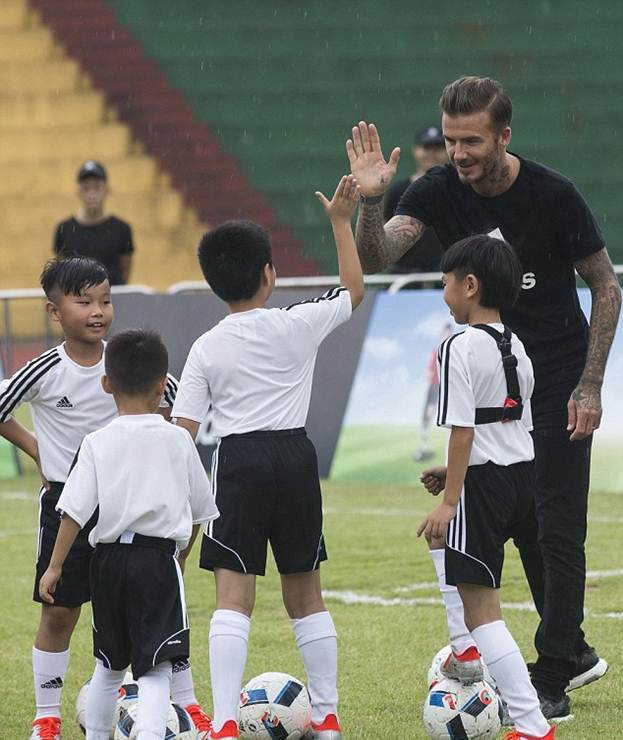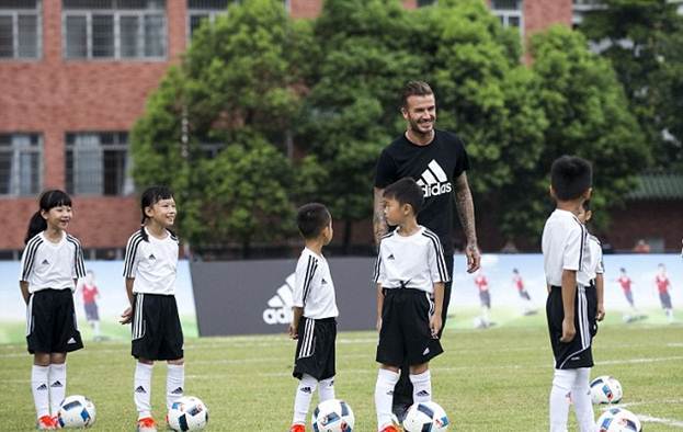 Дэвид Бекхэм учит китайских детей игре в футбол