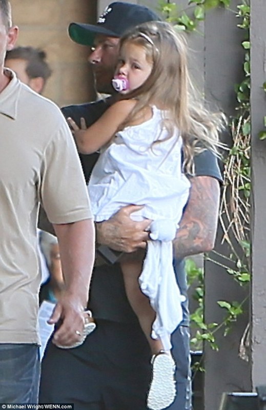 В выходные бывший футболист был замечен с младшим членом их семьи на руках - очаровательной 3-летней дочкой Харпер - когда они вместе прибыли в тренажерный зал.