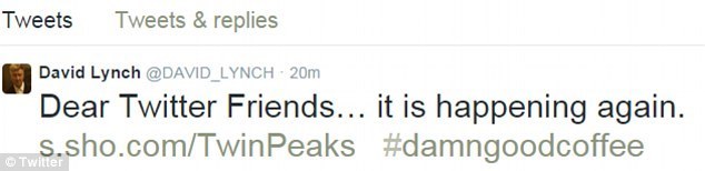 Дэвид Линч подтвердил официально слухи о том, что его культовый сериал "Твин Пикс" возвращается. "Дорогие Твиттер друзья...это происходит снова", - написал он на своем твиттере в понедельник, разместив ссылку на официальное объявление об этой новости.