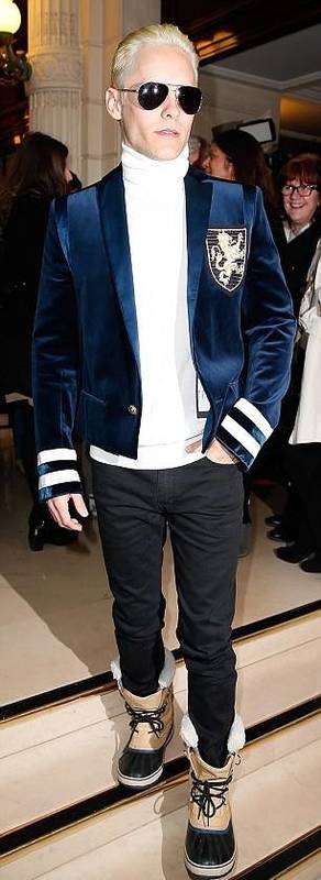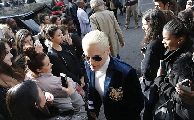Джаред Лето крадет внимание у Ким Кардашян, появившись на том же модном показе, что и она, в своем новом образе: с короткими волосами ...платинового цвета