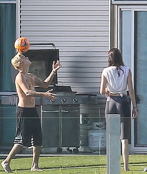 Пара в очередной раз была замечена вместе и снова во дворе дома поп-звезды. Она беззаботно проводила время, играя в мяч.
