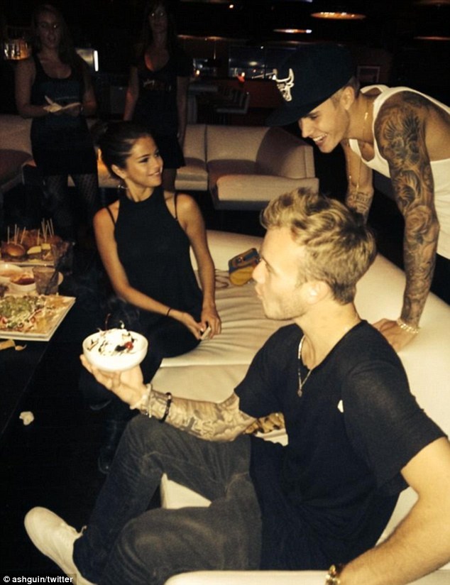 В то время как сама звездная пара не слишком афишировала свое совместное времяпровождение, подруга именинника Эшли Гуин на своем твиттере разместила фотографию Селены с Джатином, подписав ее: "Самый счастливый за то время, что я его знаю... goodcompany #heloveshisfriends # happy20thbab".