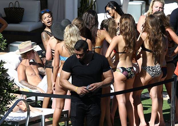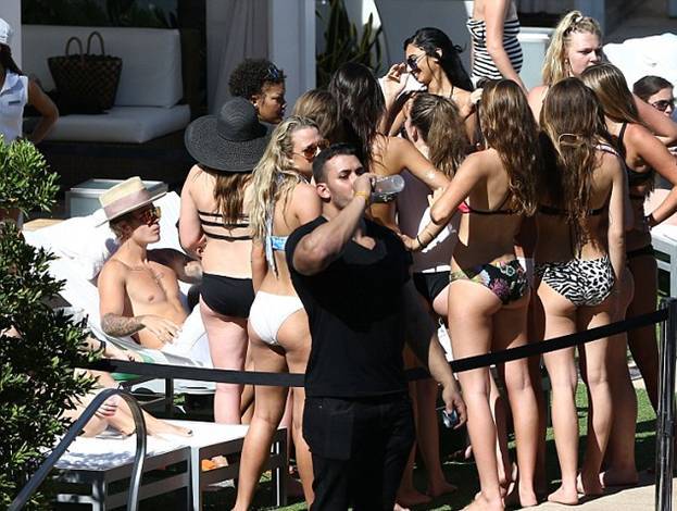 Поп-звезда был замечен в компании девушек в Майми-Бич. Они обступили его плотной стеной возле бассейна отеля Fountainbleu, где он сейчас отдыхает со своими друзьями.