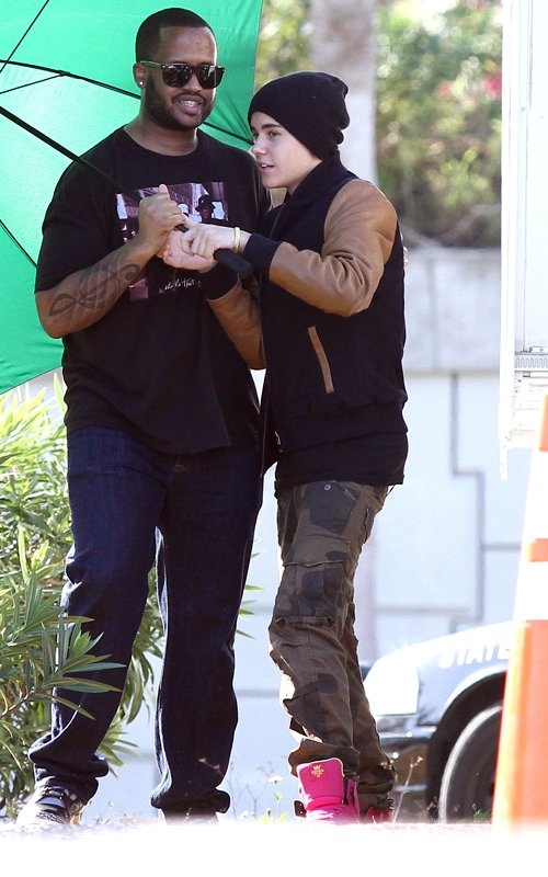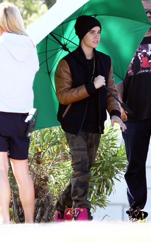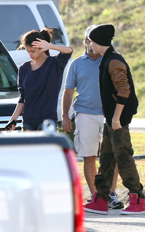 Джастин Бибер навещает Селену Гомес на съемках фильма "Весенние каникулы".