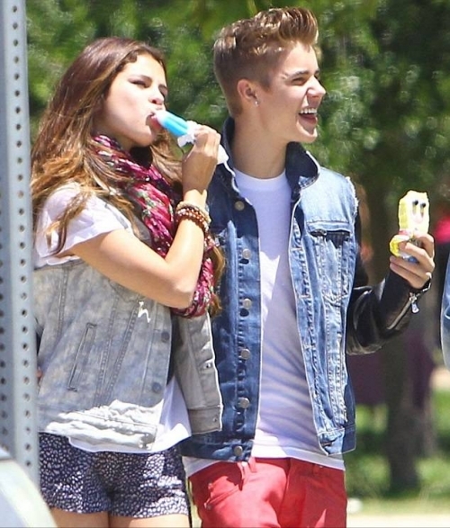 Джастин Бибер и Селена Гомес шли рука об руку в районе озера Бальбоа во второй половине дня. Молодые звезды посетили популярный ресторан мексиканской кухни Bronco Burrito, где после обеда, взяв холодный десерт в виде фруктового мороженного, с удовольствие его поглощали, выглядев при этом счастливыми и расслабленными.