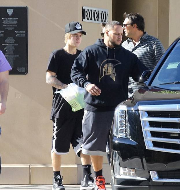 Между тем во вторник Джастин в окружении своей охраны посетил булочную Лос-Анджелеса.