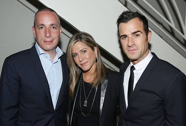 Дженнифер Энистон со своим женихом Джастином Теру и редактором журнала Details