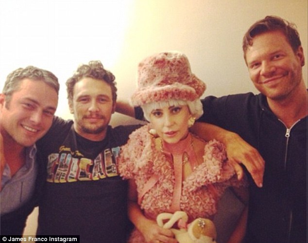 Джеймс выложил в Instagram снимок, на котором его рука перекинута за плечи Гаги, рядом ее бойфренд Тейлор Кинни, и с ним еще один друг. "LADY GAGA пришла и ей очень понравилось! О мышах и людях! ПРИХОДИТЕ! # LadyGaga," - так Франко озаглавил снимок.