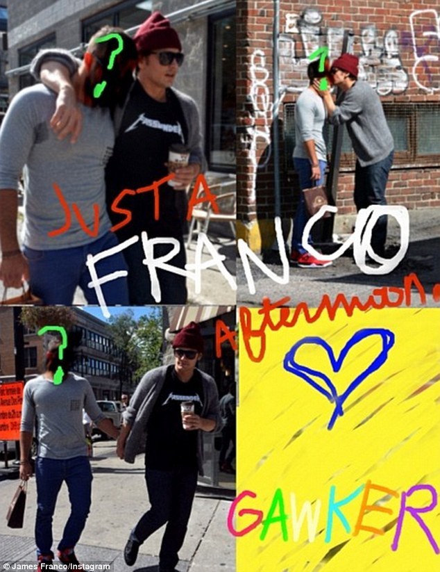 Джеймс Франко обнаружил, что является предметом стойких слухов о том, что он гей. Актер, недолго думая, решил подыграть им, разместив на своем твиттере серию фотографий-коллажей, на которых его можно заметить, целующимся или гуляющим с молодым человеком.