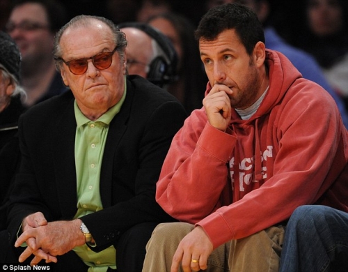Джек Николсон, Шарлиз Терон и Адам Сэндлер на игре своего любимого баскетбольного клуба
