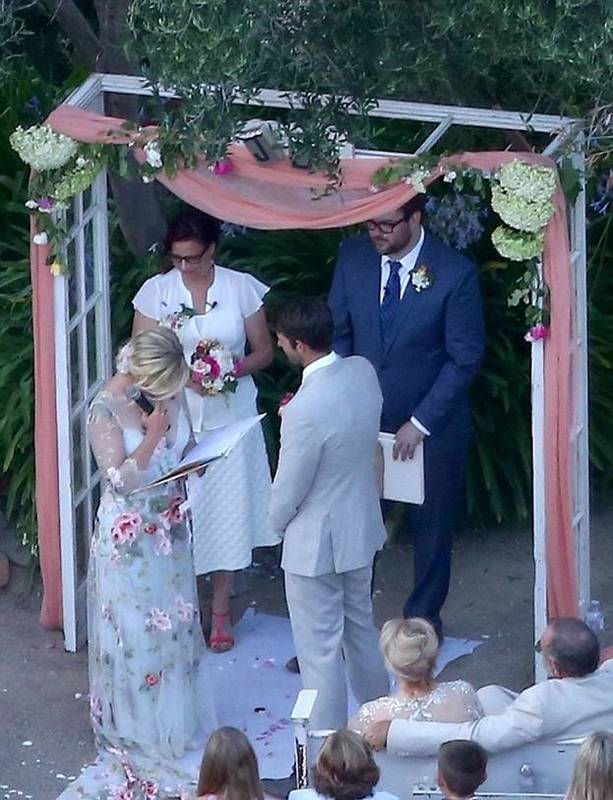 Свадебная церемония прошла в кругу родственников и близких друзей. Подружками 43-летней актрисы выступили три ее дочери от брака с Питером Фасинелли - семнадцатилетняя Лука, двенадцатилетняя Лола и восьмилетняя Фиона.
