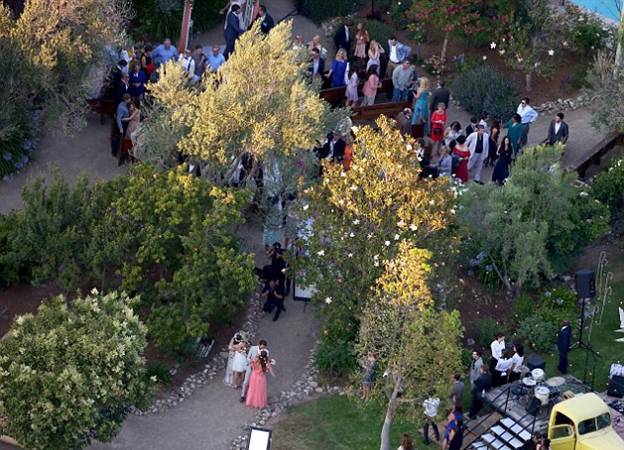 Как сообщил участник свадьбы, невеста прошла по проходу в одиночестве. Во время свадебных обетов, которые ей давал Дэвид, она не удержалась и расплакалась.