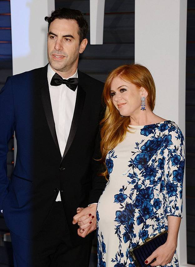 беременную Айлу Фишер со своим мужем Сашей Бароном Коэном,