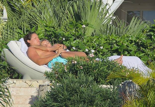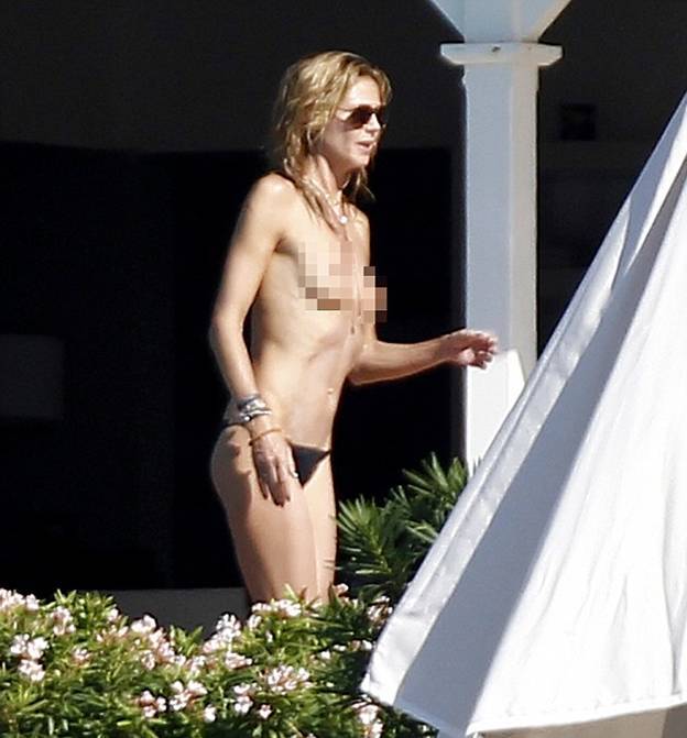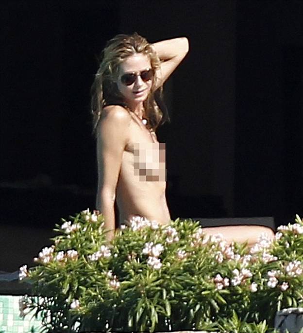 Хайди Клум со своим молодым бойфрендом Вито Шнабелем загорает на фешенебельном курорте Санкт-Бартс. Как всегда она не стесняясь загорает топлесс.