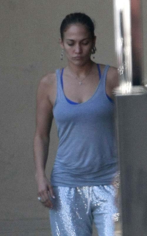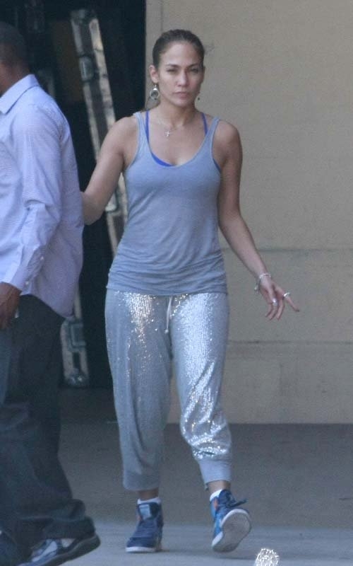 Взяв перерыв в съемке своего нового видео, Дженнифер Лопес была замечена в Лос-Анджелесе. Певица выглядела довольно оригинально в спортивном наряде, который включал в себя, серебристые штаны, высокие кроссовки и свободную майку.