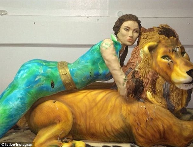 Именинница кормила своих гостей огромным тортом в виде льва и ее на нем, причем в натуральную величину.