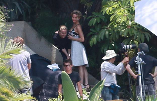 Дженнифер Лоуренс была замечена в центре Лос-Анджелеса, когда снималась для одной из своих фотосессий. Сначала 23-летняя актриса позировала в бикини, а чуть позже в вечернем платье.