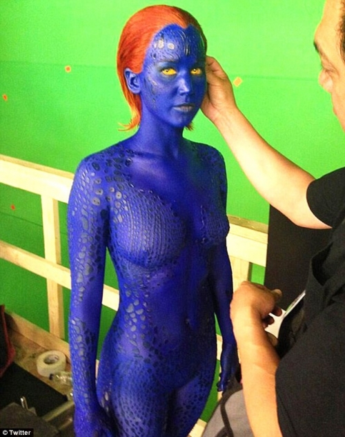 Между тем сейчас продолжаются съемки франшизы Люди Икс, где Лоуренс играет роль мутантки Мистик. В своем твиттере она разместила фотографию себя в гриме, при этом написав, что его наносили почти семь часов. После того, как из-за этого многие стали высказывать ей свое сочувствие, она написала, что ей было совсем не тяжело, и она даже получала удовольствие от грима.